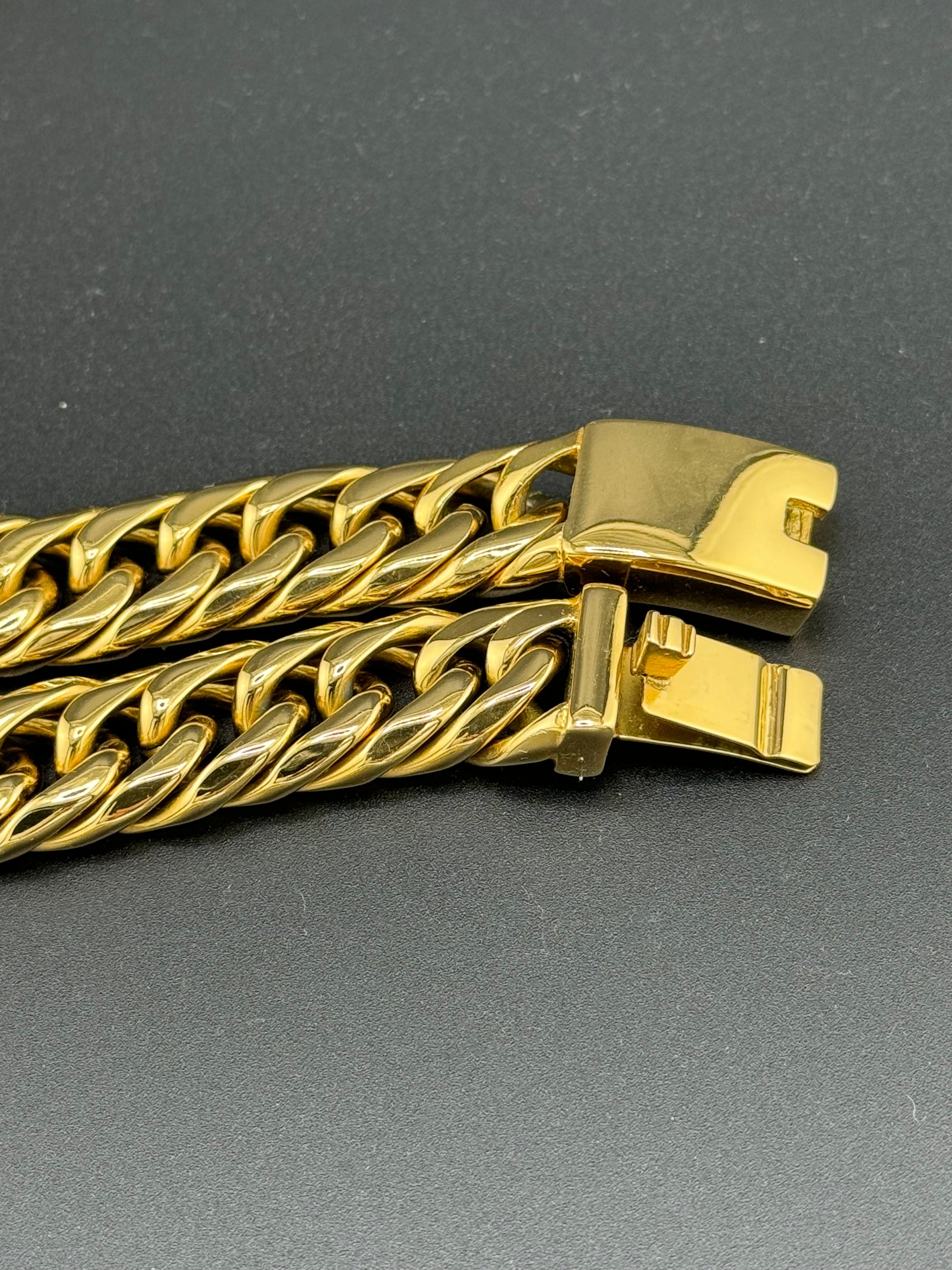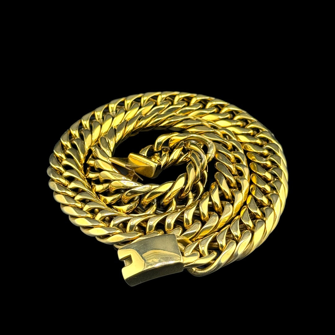 喜平6面Wゴールドチェーンで洗練されたスタイルを手に入れよう!16mmの幅で存在感抜群。金属アレルギーでも安心の316lステンレス素材。6面カットにより独特な輝きを放つ。きらびやかなゴールドとクールなデザインがマッチした、おしゃれなアクセサリーです!表面の6面カットでより一層輝きが増し、魅力的な印象を与えます。おしゃれな人気者になること間違いなし!